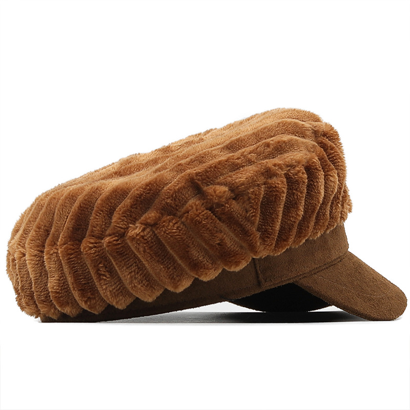 Genuine Leather Hat Top-grain Cowhide Beret Warm Duckbill Cap